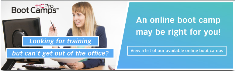 HCPro’s online bootcamps are a go-to training option for professionals of all levels. These engaging online courses allow for flexible scheduling and increased productivity for staff, reduce costs with no travel time, and give learners the opportunity to earn CEUs across multiple disciplines.
